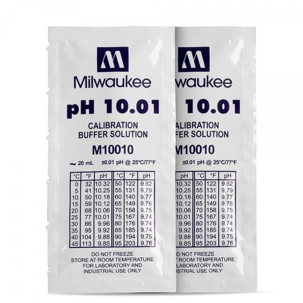 Solução de calibragem para medidores de pH digitais. Embalagem descartável de utilização única de 20 ml, valor de pH para calibração 10.01.