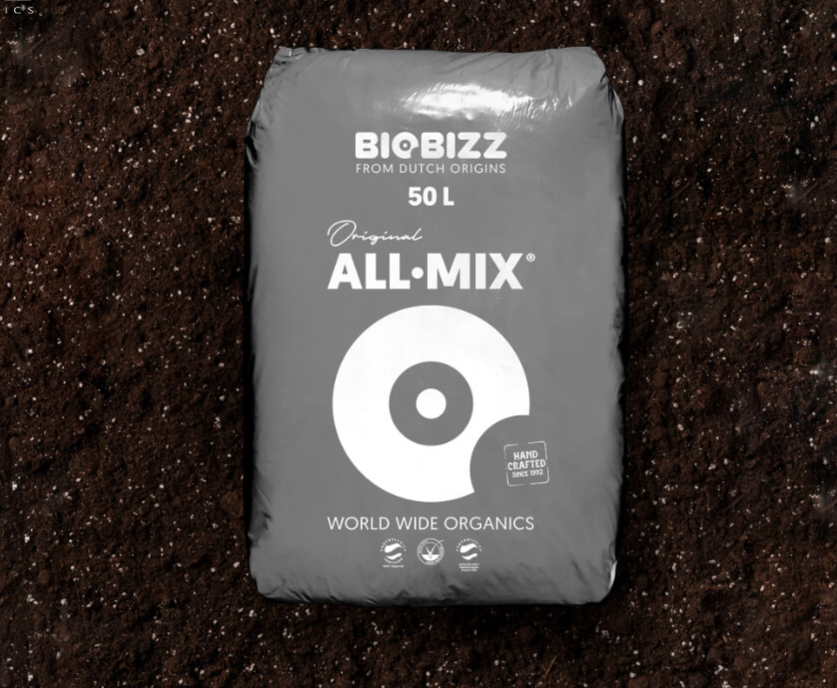 All Mix Biobizz é um substrato preparado à base de turfa loira, turfa preta, húmus de minhoca, perlita e pré-mistura.