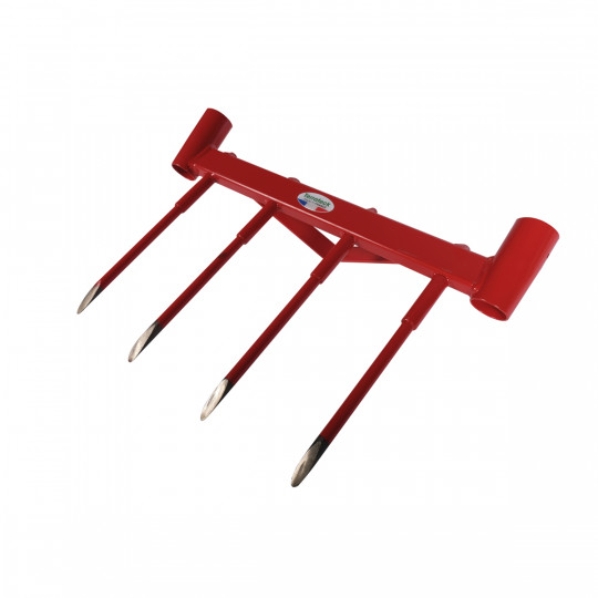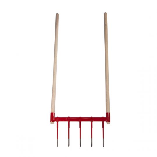 O broadfork (ou Biogriffe) penetra verticalmente e profundamente na terra graças aos seus dentes de aço endurecido, bastando pressioná-lo com os pés. Em seguida, basta puxá-lo para trás enquanto balança-o de um lado para o outro para quebrar os torrões.