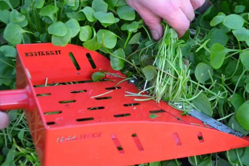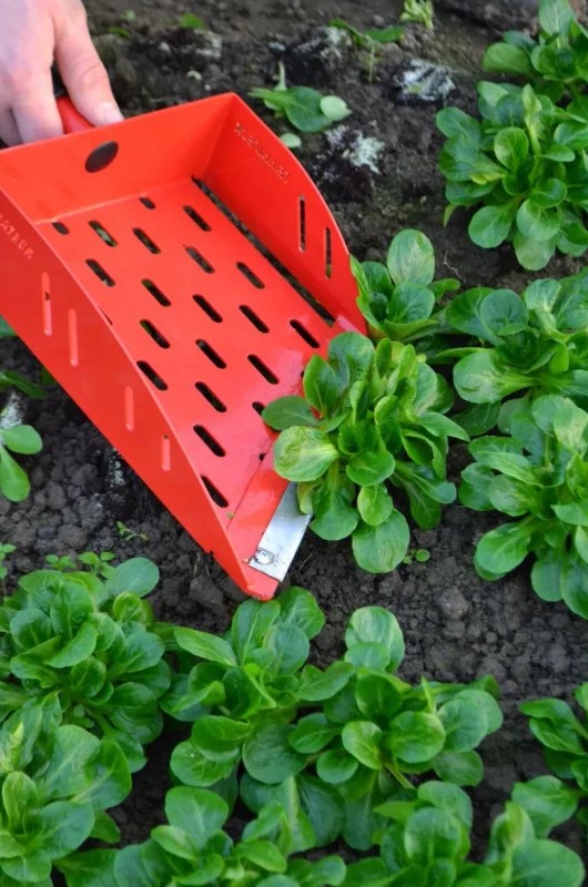 SKU: T000067 TERRATECKEste cortador de salada é composto por uma estrutura metálica retangular com uma lâmina substituível tipo "canivete" na extremidade. Esta ferramenta é utilizada para cortar a planta, deslizando a lâmina afiada da direita para a esquerda, e retém as folhas colhidas na pá.
