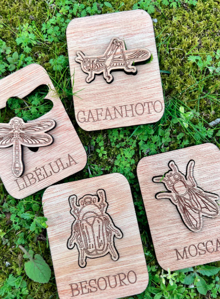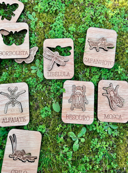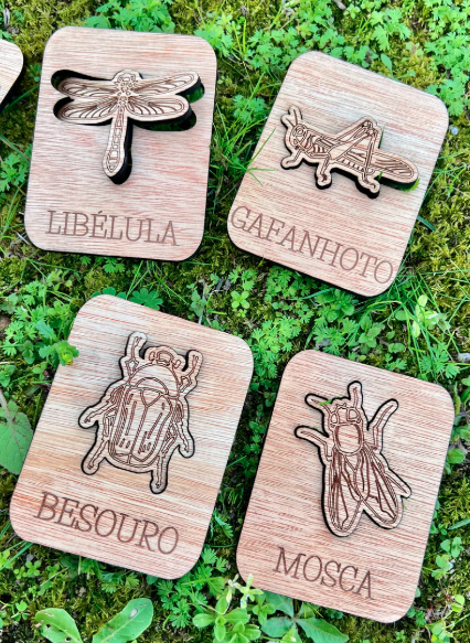 Este conjunto contém 12 puzzles simples diferentes, de 12 insetos comuns em Portugal.