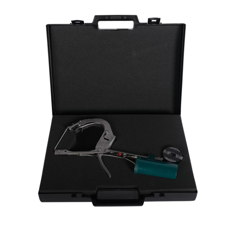Esteja a trabalhar ao ar livre, numa estufa ou numa oficina, esta ferramenta é usada para amarrar suas plantas com uma tira elástica que é frisada usando um pequeno anel de liga de alumínio.