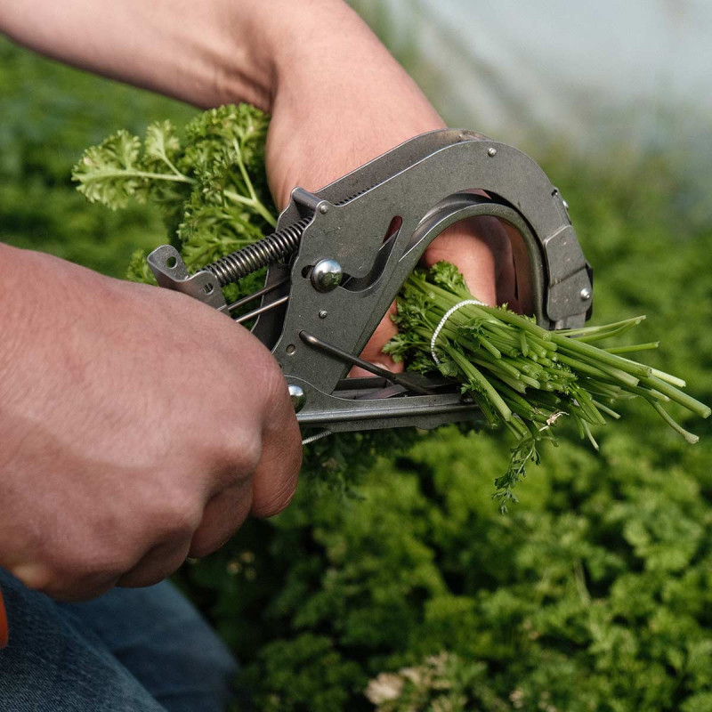 A ferramenta de empacotamento manual é usada para mecanizar as operações de empacotamento nos campos. É ideal para molhos de vegetais ou ervas aromáticas colhidos em hortas.