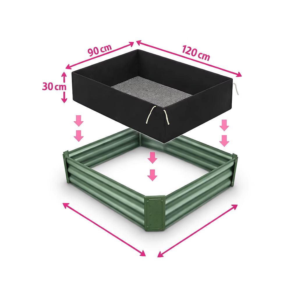 Forro para canteiro elevado concebido para encaixar dentro da estrutura e conter o substrato em segurança.