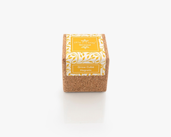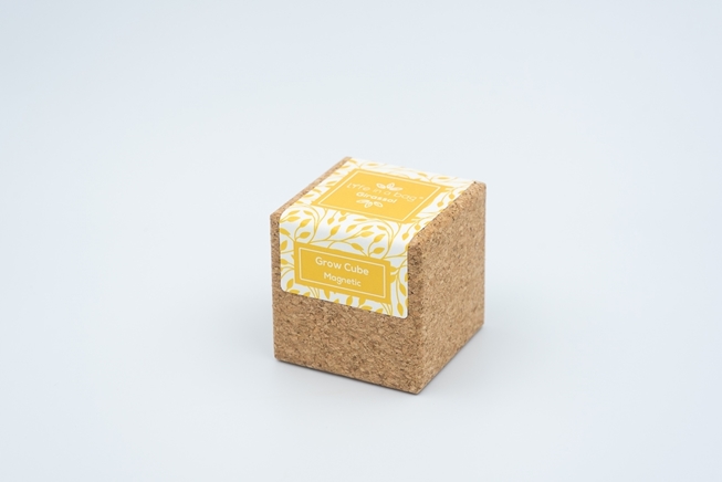 Cubo de cortiça com íman, substrato orgânico e sementes biológicas.
