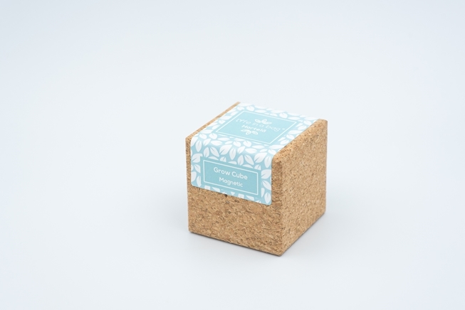 Cubo de cortiça com íman, substrato orgânico e sementes biológicas.
