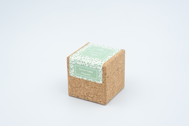 Cubo de cortiça com íman, substrato orgânico e sementes biológicas.