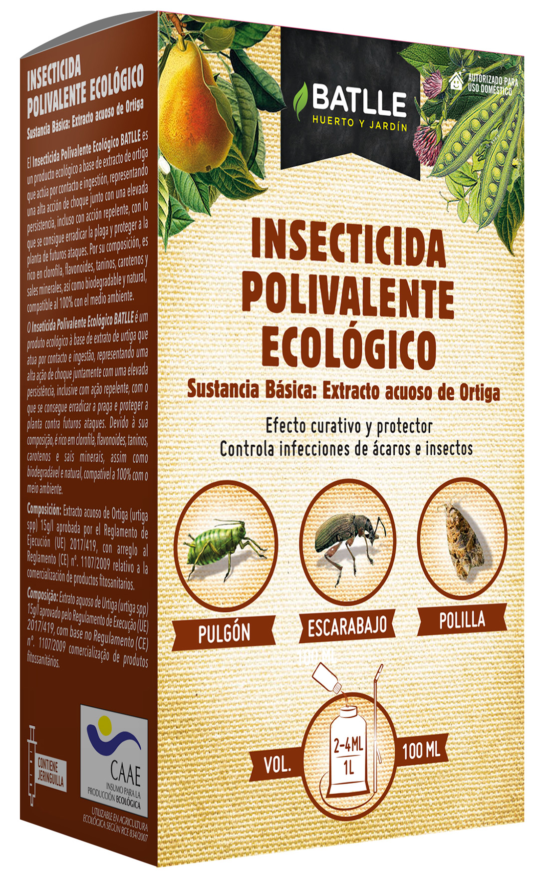 O Inseticida Polivalente Eco BATLLE é um produto ecológico à base de extrato de urtiga que atua por contato e ingestão, apresentando alta ação de choque aliada a alta persistência, mesmo com ação repelente, com a qual é possível erradicar a praga e proteger a planta da ataques futuros.