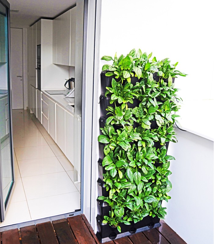 Pode ser pendurado na parede ou apoiado no chão. A modularidade do Minigarden Vertical permite desenhar e instalar jardins verticais de qualquer dimensão, com grande facilidade, deixando espaço para a sua criatividade.