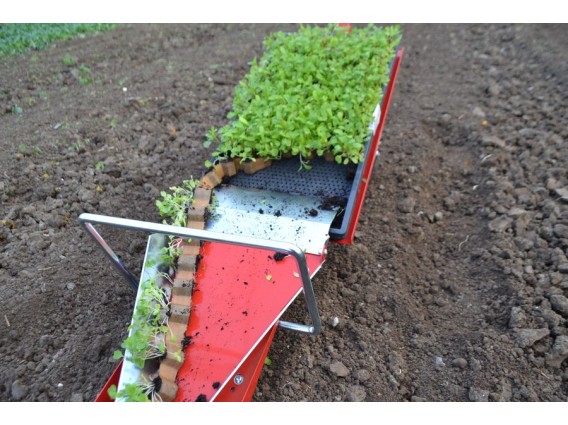 No final da colheita, o papel apodrece na terra deixando o espaço livre para a cultura seguinte. O processo de transplante deve ser feito usando o sistema de células associado a este equipamento.