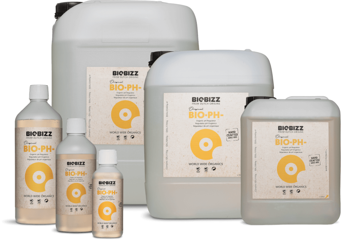 BioBizz Bio pH- diminui o pH da sua solução nutritiva quando necessário. Isso facilita o crescimento rápido, mantendo um equilíbrio ideal entre acidez e alcalinidade. Bio pH - alcança isso sem o auxílio de produtos químicos agressivos produzidos pelo homem, tornando-o compatível com regimes de nutrientes totalmente orgânicos. Se os níveis de pH caírem fora da faixa, os efeitos levarão a deficiências que se manifestarão em toda a cultura, causando stresse, reduzindo as taxas de crescimento e reduzindo os rendimentos. Use produtos de pH BioBizz para garantir que isso nunca aconteça!