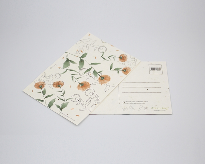 Dê uma nova vida ao papel! Ofereça uma mensagem neste postal, e quem o receber terá que o rasgar, enterrar num vaso com terra e verá o papel transformar-se numa flor. O postal para semear é uma alternativa diferente e ecológica na hora de oferecer um presente aos seus amigos e familiares.