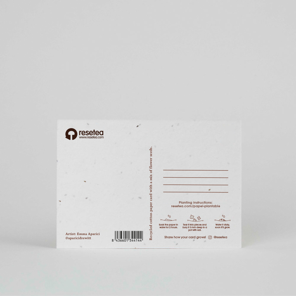 Este cartão é impresso em papel de algodão reciclado e contém uma mistura de sementes de flores.