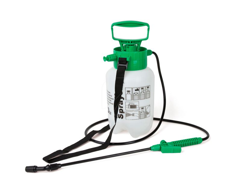 O pulverizador pré-pressurizado possui um sistema de irrigação com pré-filtro no tubo de sucção e uma alça ergonômica.