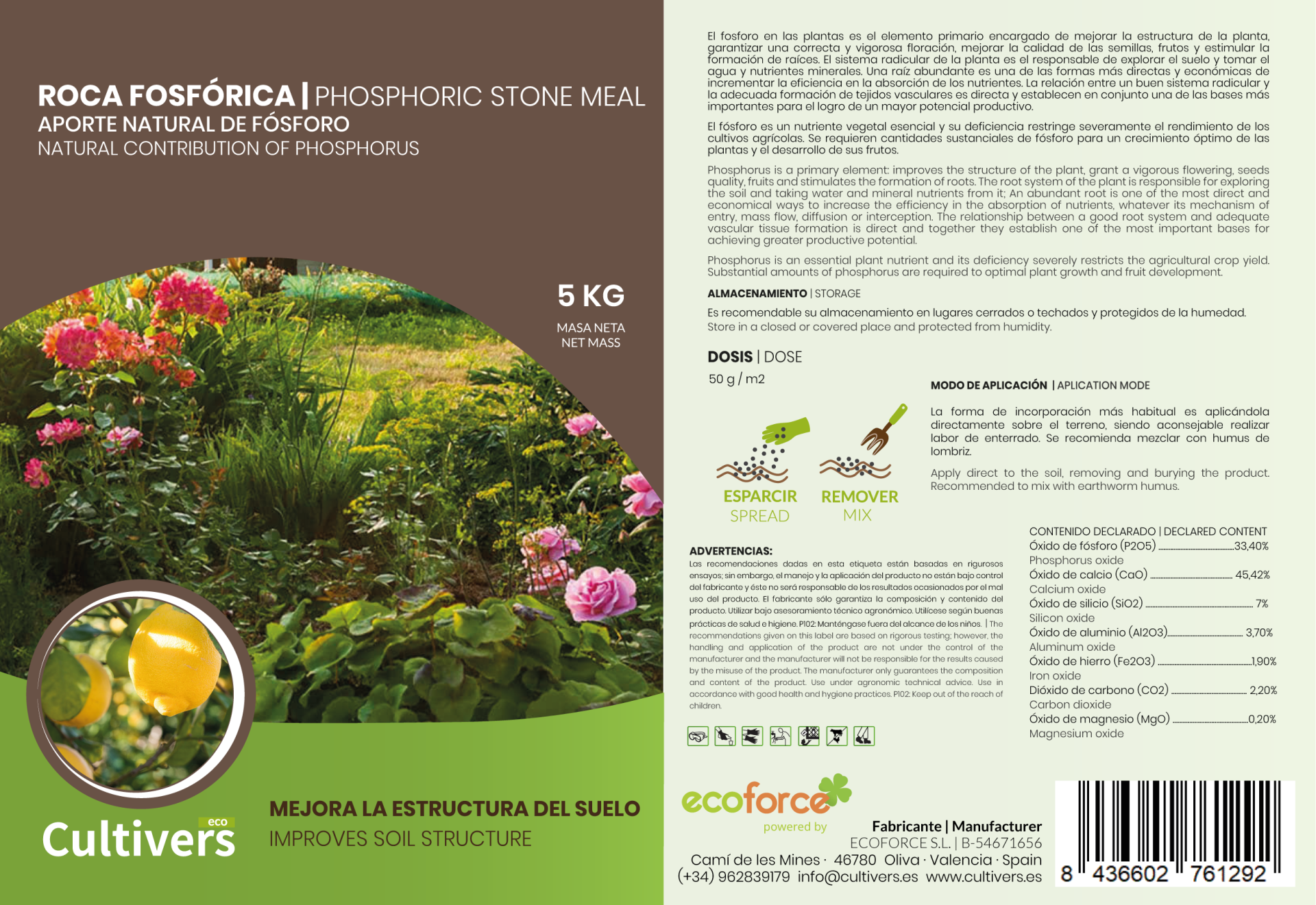 A rocha fosfórica fornece 100% de fósforo orgânico.