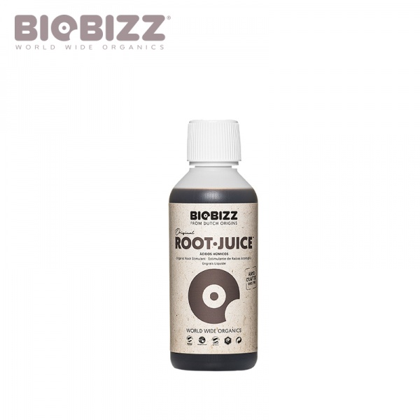 ROOTJUICE é um equilíbrio harmonioso de ácidos humico & fulvico de primeira qualidade e algas, especialmente formulado para promover um desenvolvimento de raíz orgânico e vigoroso. Para ser utilizado em solo, ou sem terra, hidroponico, ou jardins bonsai juntamente com a nutrição normal durante estágios de desenvolvimento de raíz intensivos. Foi originalmente desenvolvido para acelerar o crescimento de raízes em transplantes em solo. No entanto, ROOTJUICE tornou-se popular na América do Norte em culturas hidroponicas e culturas em lã de rocha devido à resposta explosiva das raízes associada a este produto. Também encontrou a preferência entre os possuidores de bonsais no Japão e nos EUA que necessitam de um desenvolvimento de raízes forte de fontes amigas do ambiente e orgâncias para o desenvolvimento sustentável e de longo termo.