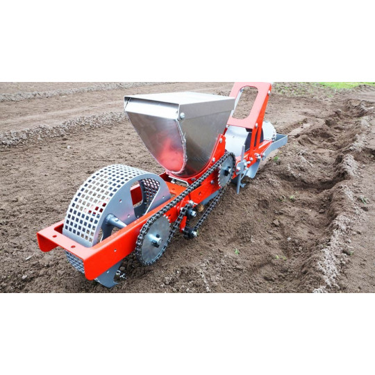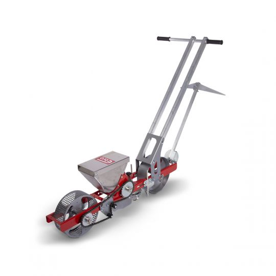 As rodas largas e de grande diâmetro garantirão um movimento fácil e não compactarão tanto a terra. Os pinhões da semeadora garantirão o espaçamento preciso das sementes na proporção da taxa do seu progresso.