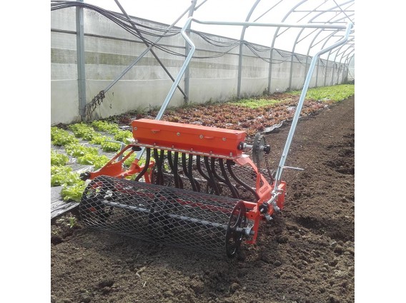 A semeadora de 12 fileiras foi desenhada para operações diversificadas de agricultura ou jardinagem. Um eixo central rotativo alimenta a semente para um disco perfurado que liberta as sementes uma a uma. A densidade de sementeira é proporcional ao movimento de avanço e ajustável com diferentes rodas dentadas.