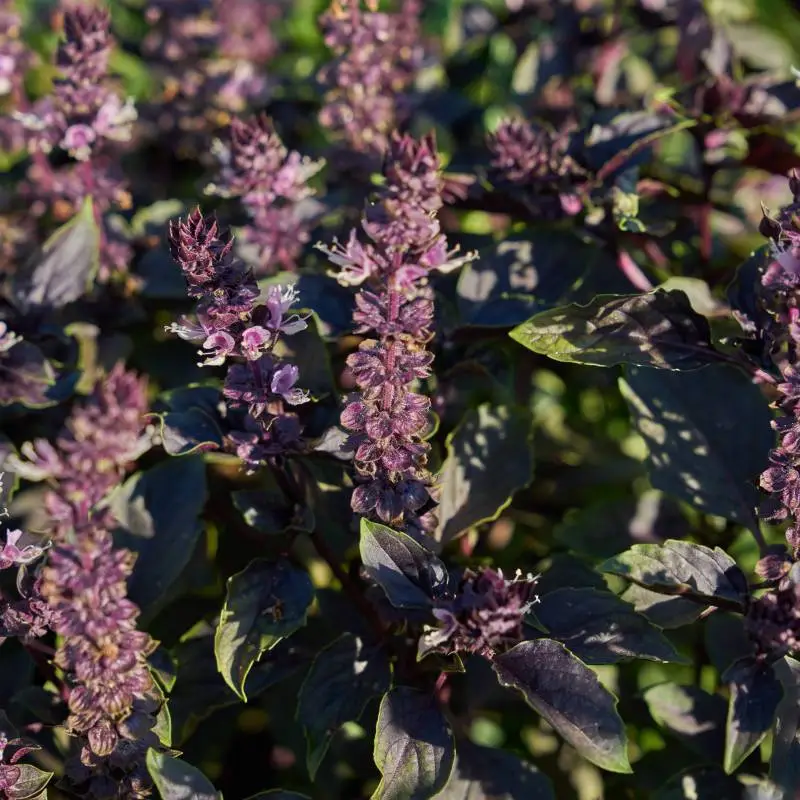 Variedade altamente aromática com folhas avermelhadas. Mesmo sabor e características do manjericão genovês. As flores são especialmente atraentes para as abelhas.