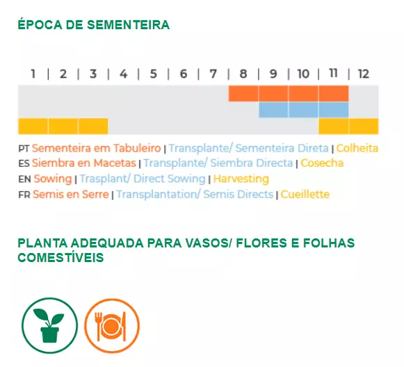A alternariose, míldio e podridão cinzenta são doenças da cultura. Para o controlo da alternariose devem usar-se compassos largos e, se necessário, fungicidas cúpricos (como a calda bordalesa) em tratamento preventivo. O míldio pode ser controlado realizando rotações culturais adequadas, compassos largos, evitando excesso de água sobre as plantas e no solo e, se necessário, pelo uso de produtos cúpricos. A podridão cinzenta é controlada eliminando restos de plantas doentes, evitar excessos de vigor, evitar água sobre as plantas e aplicação de argila bentonítica regularmente.Sementeira Direta: De Março a Setembro Colheita: De Junho a Fevereiro Livre de OGM Agricultura EU PT-BIO 03 Regras e Normas UE – Categoria standard