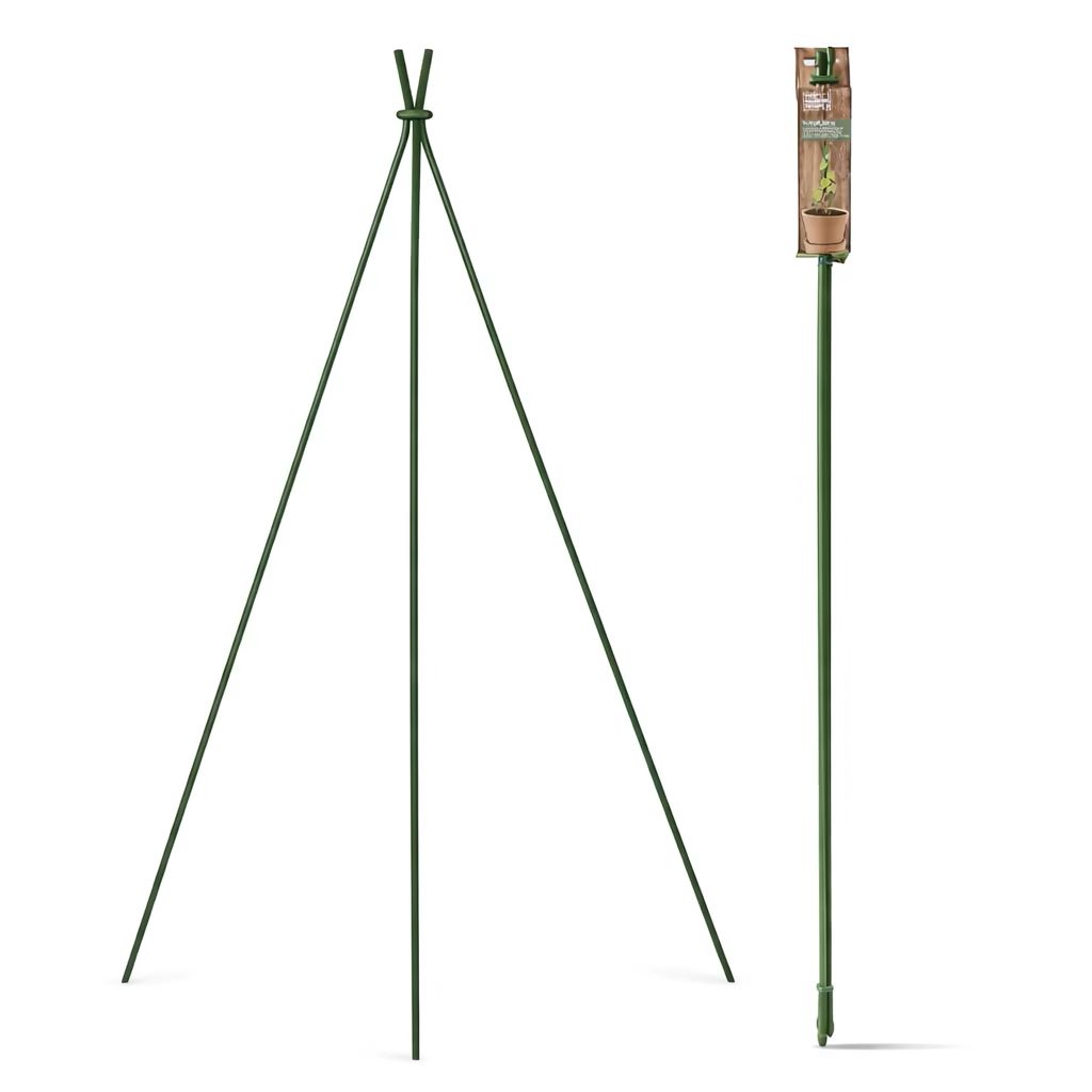 Estes suportes unem-se no topo, formando um triângulo que as plantas ornamentais podem escalar à medida que crescem.