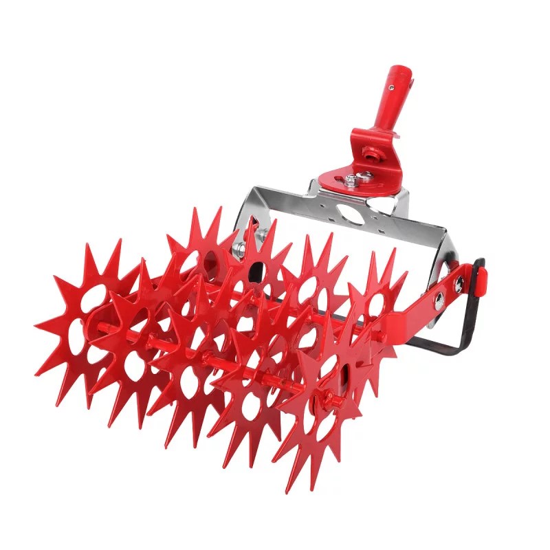Este rebento de rodas está equipado com duas filas de ferramentas de leme de 3 e 2 estrelas, com uma lâmina de enxada de estribo oscilante substituível.